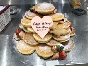 今回のブログは少し前に私が担当させて作らせていただいたパンケーキウェディングケーキを紹介出来たらなと思います!