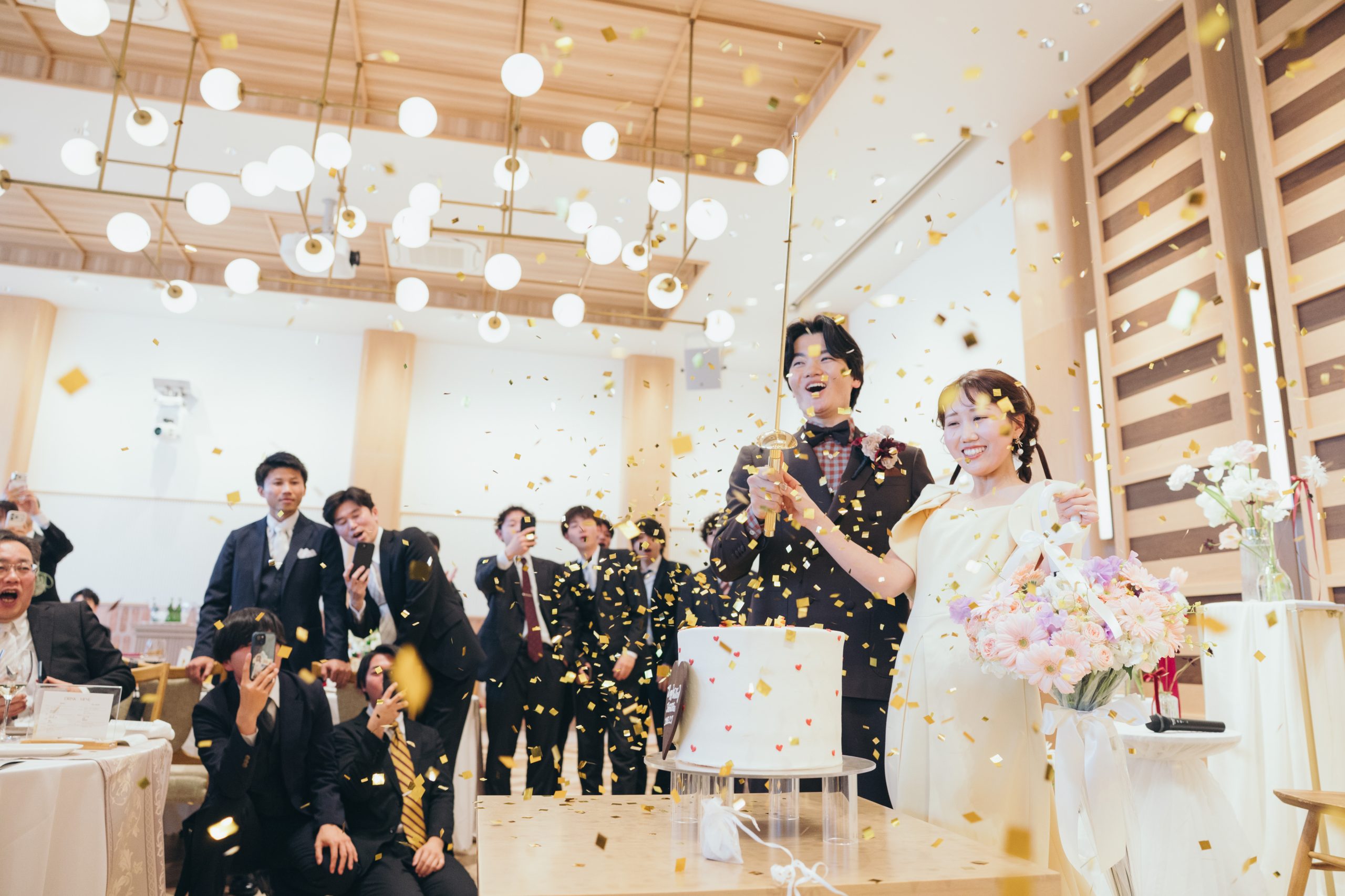 バルーンをスパークして金箔が舞い完成です!